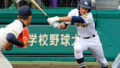 これに対し、西短打線も天理・南への対策は万全だった。ここまで4試合でわずか3失点の難攻不落の長身右腕に対し、2回表に5番山口、6番片岡が連打を放つ。エンドランも絡めており、足元からの揺さぶりも効果的だ。ここで鹿実戦はホームランと当たっている7番後藤が3塁戦突破のタイムリー!2者が生還し、逆転に成功する。南の角度のある速球に対し、徹底して叩きつける打撃で攻略に成功する。