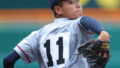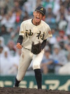 大社のマウンドに向かった岸。初回、いきなり強打の神村学園の上位打線と対したが、独特なフォームから投じるキレのある真っすぐで、1番増田、2番入木田、3番今岡を3者凡退で切って取る。馬庭の負担を少しでも減らすためにも、岸の働きは重要となる。