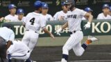 だが、この場面は今村が開き直ったか、3番坂本に対し、スローボールを使う余裕を見せる。最後はスライダーでファーストゴロに打ち取り、ファースト藤田が確実にバックホームして3塁ランナーを封殺。だが、その間に打った坂本は2塁を奪っており、このあたりの両校の攻防も非常にハイレベルだ。一打逆転の場面で打席には主砲・高橋。しかし、最後はアウトコースのボールを打たせ、ショート今村がよくさばいてショートゴロに。神村・今村が6回まで無安打で1点のリードを守る。