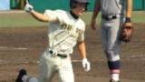 しかし、好試合もいつか明暗の分かれるときがやってくる。10回表、タイブレークの無死1.2塁から7番酒井の犠打は、ブルドッグ守備を見せたファースト国光の好守で3塁フォースアウトに!さらに、続く8番田崎の打席で、2塁ランナーが三盗を狙うが、これも捕手・山中の好送球で封殺と、意地でも3塁を与えない早実の守備が光った。中村は10回を投げ切って、4安打無失点。想定を大きく上回る好投であった。
