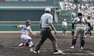 ただ、この日の織田に5点の差は十分すぎるほどのリードだった。敦賀気比打線も好球は積極的に振っていくのだが、最後は織田のボールの前に少し差し込まれ、打ち取られてしまう。最終回も二人のランナーを出したものの、最後は代打・村雲が併殺に打ち取られて試合終了。常連校相手、雨天中断など厳しい状況をものともしなかった横浜が、春夏連覇の偉業に向け、まず一つ目の壁を突破した。