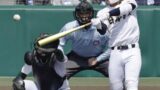 これで前田も乗っていきたいところだったが、2回戦の城北戦で安定感抜群の投球を見せたエースも、この日はなかなか調子が上がらない。4回裏2四球を与えるなど、1アウト満塁のピンチを招くと、打席には先ほどタイムリーを打たれた3番西川。広角に打ち分ける強打者に対し、決め球のスライダーでアウトコースを突くも、甘くなってしまう。逆方向へ見事に打ち返した打球はレフト線を鋭く破っていく勝ち越し2点打に。追いついたPLにとっては、この失点は再び相手に主導権を渡す嫌な失点であった。
